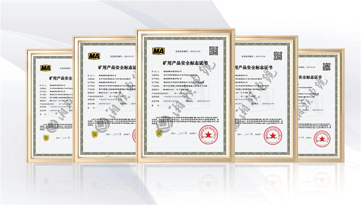 礦用電纜必須嚴(yán)格遵守國家及行業(yè)雙重標(biāo)準(zhǔn),需按照GB/T 12972《礦用橡套軟電纜》、MT818-2009《煤礦用阻燃電纜》生產(chǎn),都應(yīng)經(jīng)過安標(biāo)國家礦用產(chǎn)品安全標(biāo)志中心頒發(fā)礦用產(chǎn)品安全標(biāo)志證書,才能向市場出售 。近期,湘聯(lián)電纜的MVV-0.6/1(1.5~300)mm2煤礦用聚氯乙烯絕緣聚氯乙烯護(hù)套電力電纜、MYJV-8.7/10(25~300)mm2煤礦用交聯(lián)聚乙烯絕緣聚氯乙烯護(hù)套等6款電力電纜成功取得礦用產(chǎn)品安全標(biāo)志證書,其產(chǎn)品在阻燃、耐壓、抗拉強度等方面均達(dá)到行業(yè)標(biāo)準(zhǔn)。
