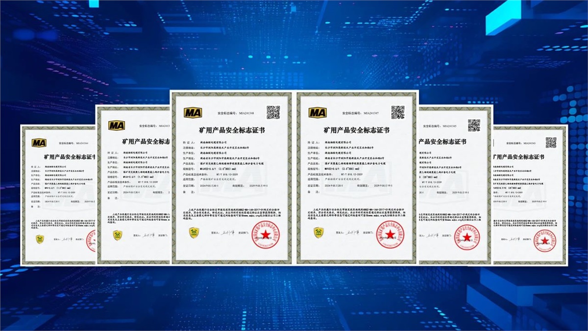 5月,湖南湘聯(lián)電纜有限公司成功取得安標(biāo)國(guó)家礦用產(chǎn)品安全標(biāo)志中心頒發(fā)MVV-0.6/1(1.5~300)mm2煤礦用聚氯乙烯絕緣聚氯乙烯護(hù)套電力電纜、MYJV-8.7/10(25~300)mm2煤礦用交聯(lián)聚乙烯絕緣聚氯乙烯護(hù)套電力電纜等六個(gè)產(chǎn)品的礦用產(chǎn)品安全標(biāo)志證書。