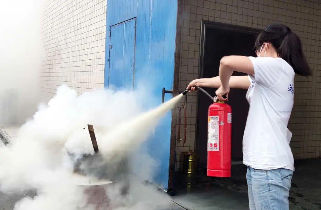 ▲員工正在進行滅火器實操演練