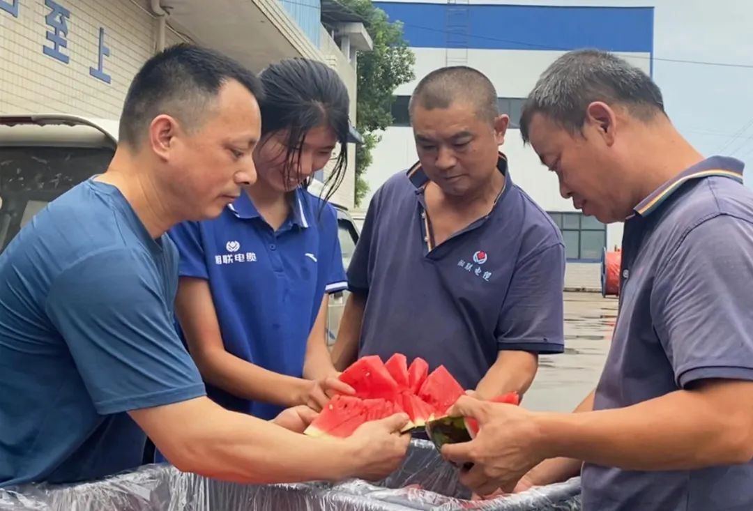 面對高溫天氣,湘聯(lián)電纜領(lǐng)導(dǎo)高度重視員工生命安全,并采取多項措施幫助員工應(yīng)對高溫生產(chǎn)工作,如配備防暑降溫的藿香正氣水、涼茶等物品,同時堅持開展夏日送西瓜的員工福利活動,預(yù)防高溫中暑。