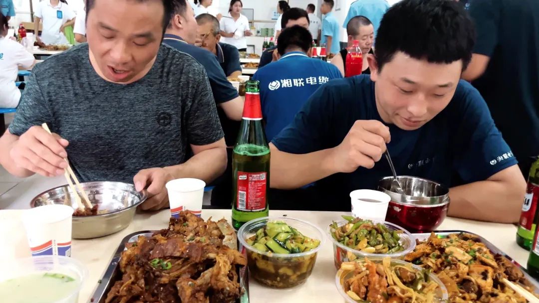 在員工餐廳,大家齊聚一堂,圍桌而坐,時而三倆交流,時而舉杯慶祝,時而專注美食,到處洋溢著一種歡樂的氛圍。肉質(zhì)鮮美的羊肉、營養(yǎng)豐富的羊雜湯、精致可口的小菜、清爽新鮮的水果、清涼的飲品讓大家的幸福感油然而生。