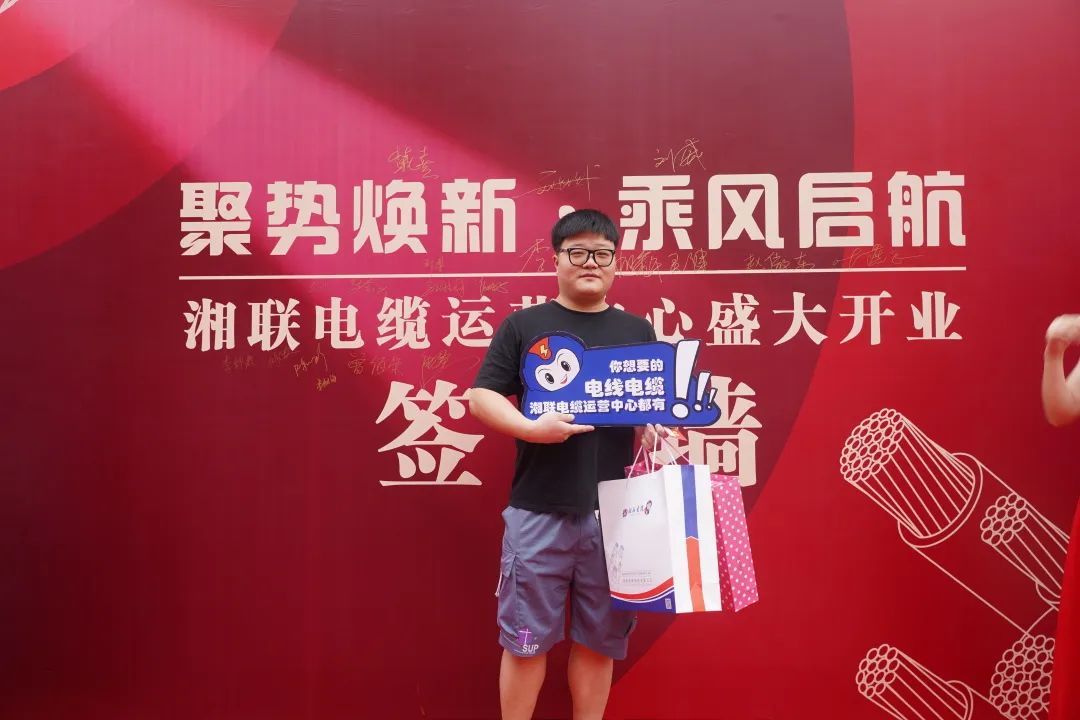 郴州市佳琪物資有限公司總經(jīng)理許靈健許總作為經(jīng)銷商代表在開業(yè)典禮上致賀詞,在發(fā)言中,他表達(dá)了對(duì)湘聯(lián)電纜的高度認(rèn)可,并表示希望能夠和湘聯(lián)電纜一起,同心同行,一起筑造更美好的明天。